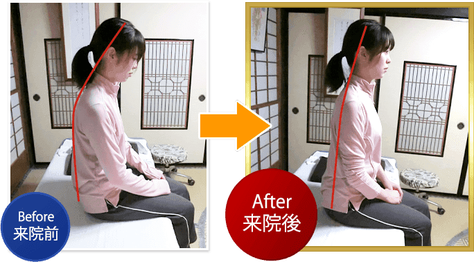 そのため当院で、背骨や骨盤を正しい位置に戻し、姿勢を整えることで、痛みの原因を改善します。